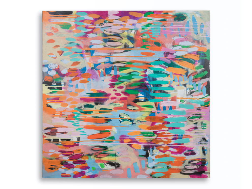 Working primarily with acrylic, mixed media, charcoal and collage elements, McAlister embraces spontaneity and chance while maintaining strong compositional control. Her paintings blur the boundary between the visual and the performative, inviting viewers not only to observe, but to feel.